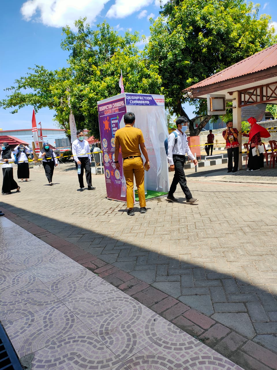 Pelaksanaan SKB dimulai dengan peserta memasuki bilik disinfektan, langsung mencuci tangan, pengecekan suhu tubuh dan menunggu di ruang tunggu yang telah disiapkan. Setelah pengecekan suhu tubuh, peserta melakukan registrasi sebagai bukti kehadiran, kemudian pengambilan PIN Kartu ujian, menyimpan barang di loker dan menunggu di ruang tunggu. Sebelum memasuki ruang ujian, dilakukan cek body.