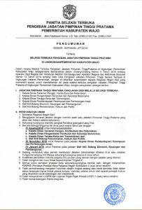 Download surat pada link di bawah ini : Pengumuman tentang Seleksi Terbuka Pengisian Jabatan Pimpinan Tinggi Pratama Pemerintah Kabupaten Wajo
