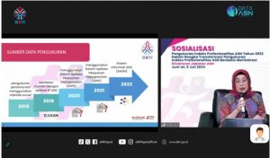 Jakarta – Humas BKN, Dengan ditetapkannya Undang-Undang (UU) Nomor 20 Tahun 2023 tentang Aparatur Sipil Negara (ASN) yang antara lain menyatakan bahwa manajemen ASN adalah serangkaian proses pengelolaan ASN untuk mewujudkan ASN yang profesional dengan hasil kerja tinggi dan perilaku sesuai nilai dasar ASN, bebas dari intervensi politik, serta bersih dari praktik korupsi, kolusi dan nepotisme (KKN). Badan Kepegawaian Negara (BKN) dalam hal ini mengadakan Sosialisasi Pengukuran Indeks Profesionalitas ASN (IP ASN) sebagai bagian dari pelaksanaan transformasi pengukuran IP ASN berbasis meritokrasi secara daring melalui zoom meeting dihadiri oleh Kepala Biro SDM/Kepegawaian Instansi Pusat, Kepala BKD/BKPDSM/BKPP Instansi Daerah, Pejabat Pimpinan Tinggi di lingkungan BKN dan Pengelola IP ASN Instansi Pemerintah sebanyak 500 orang melalui zoom meeting dan live Youtube BKN sebanyak kurang lebih 2.994 penonton dan dibuka oleh Plt. Kepala BKN, Haryomo Dwi Putranto.